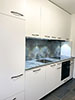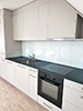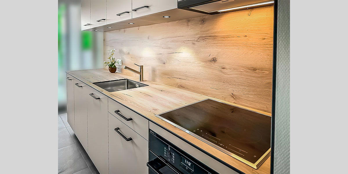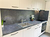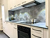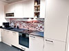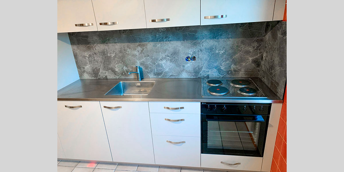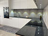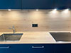 - De la crédence en céramique, quart, verre poli, inox ou composite faisant lien avec le plan de travail