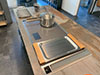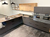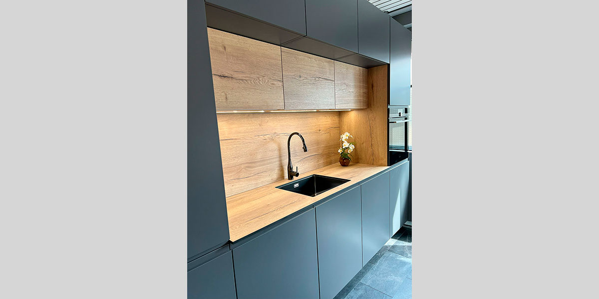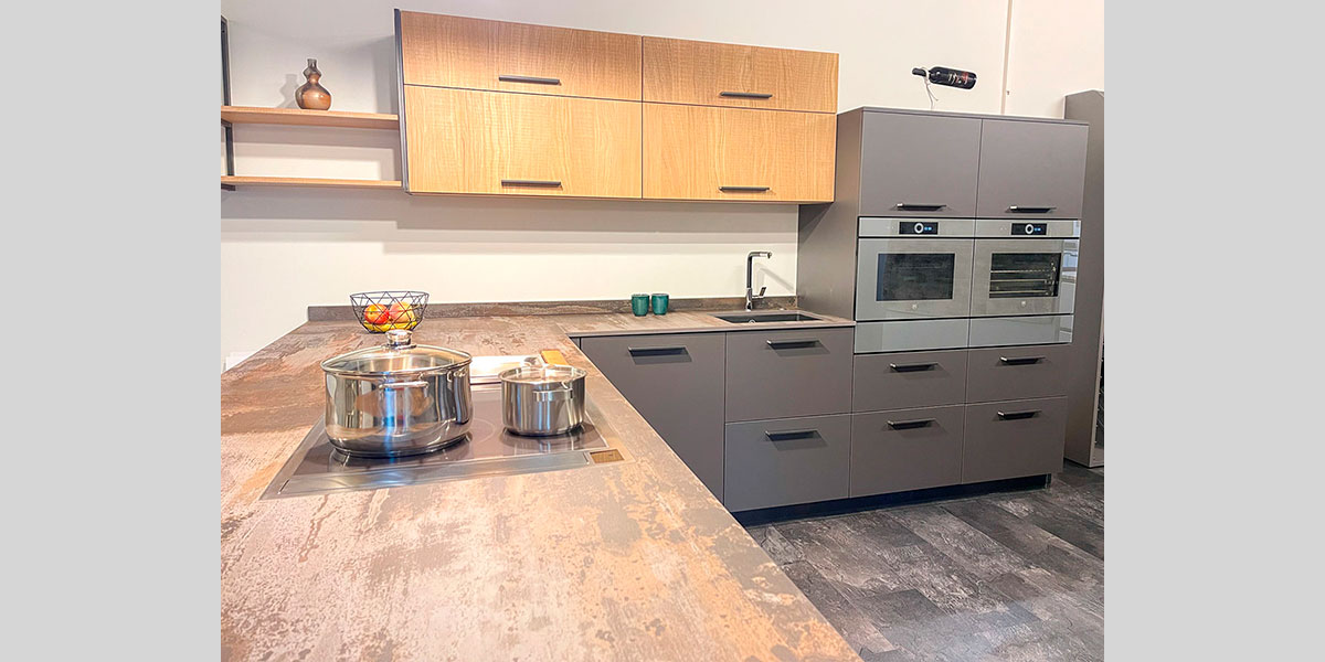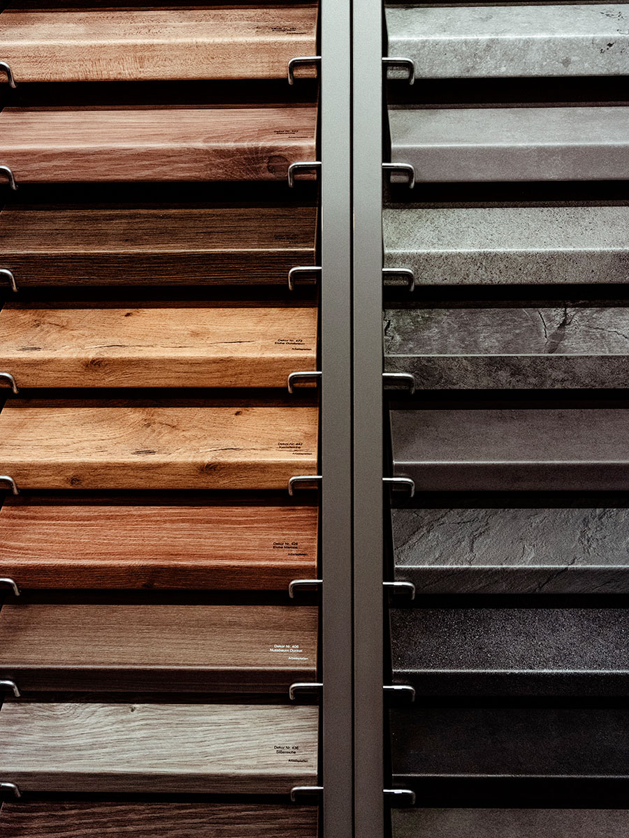 Notre échantillothèque de matériaux de cuisines offre une variété étendue de plans de travail, façades et autres éléments essentiels, permettant de voir et de sentir les matériaux pour une sélection précise en accord avec leurs préférences esthétiques et fonctionnelles.